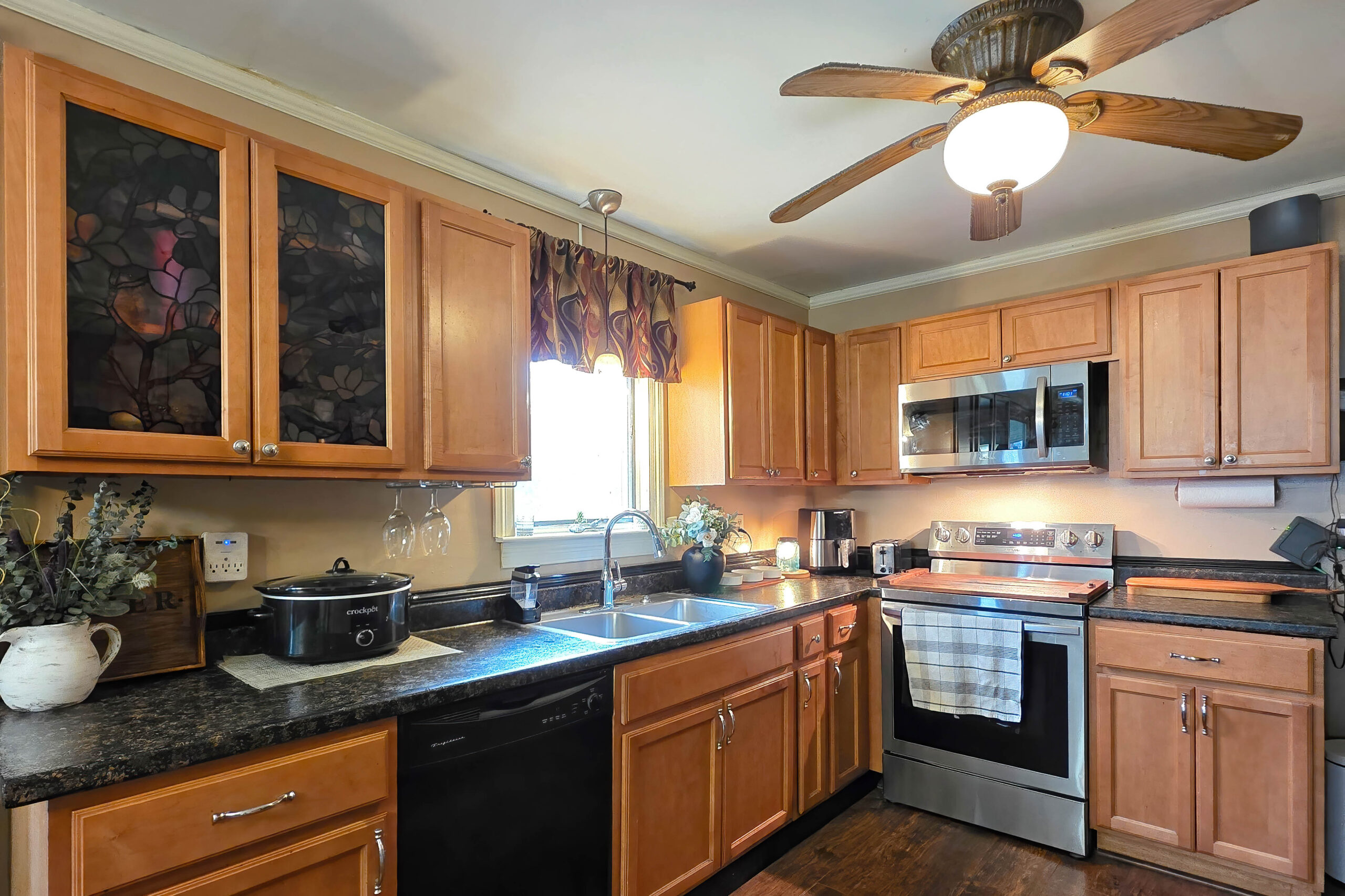 - Appliances Included: Stove, Refrigerator, Microwave, Dishwasher, Washer and Dryer, Wood Stove